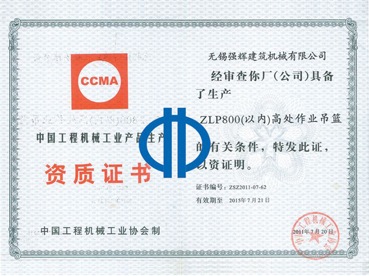 中國工程機械工業產品資質證書